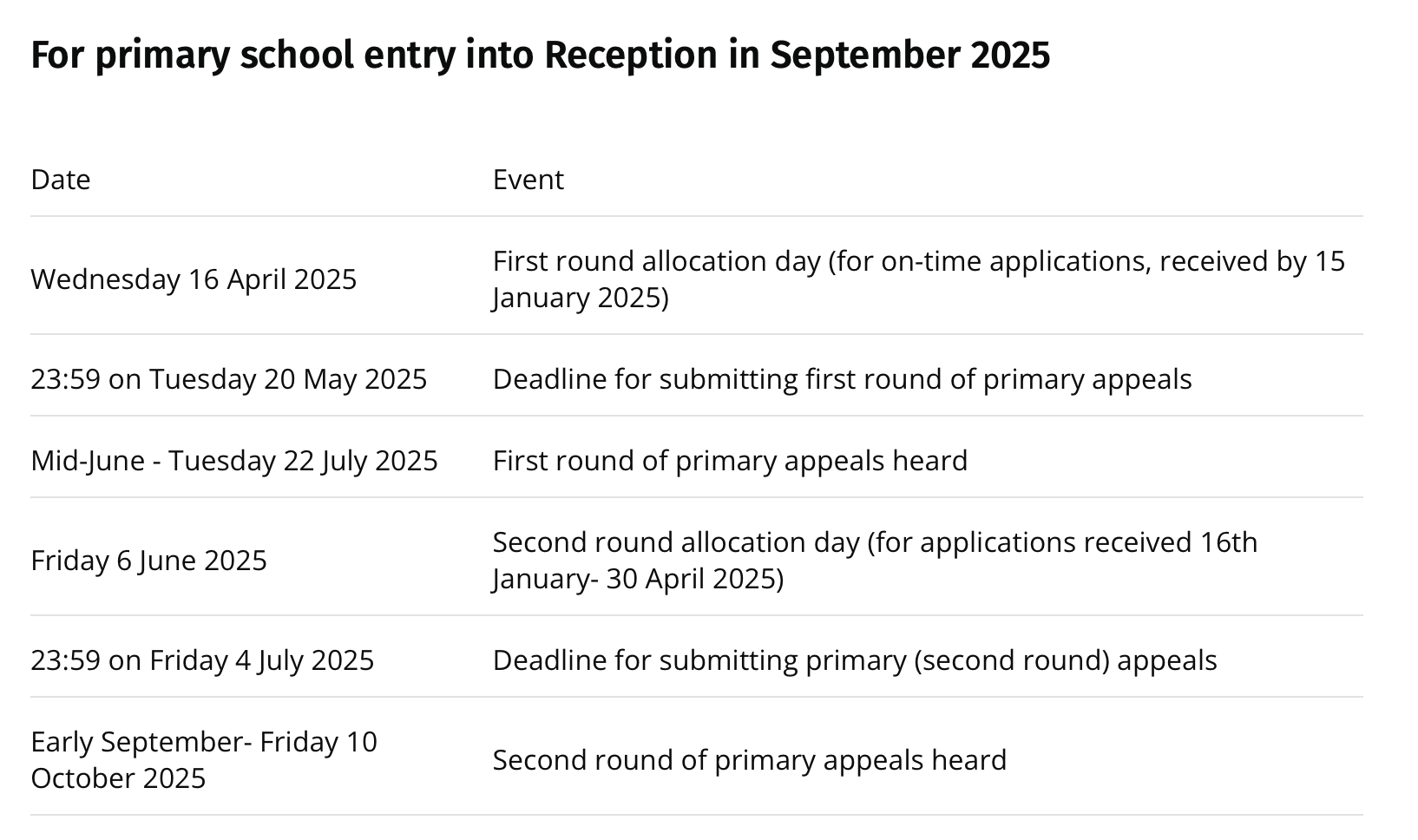 The timetable for school appeals is published each year. Below is the timetable taken from the OCC website which is still to be updated for 2026 dates.